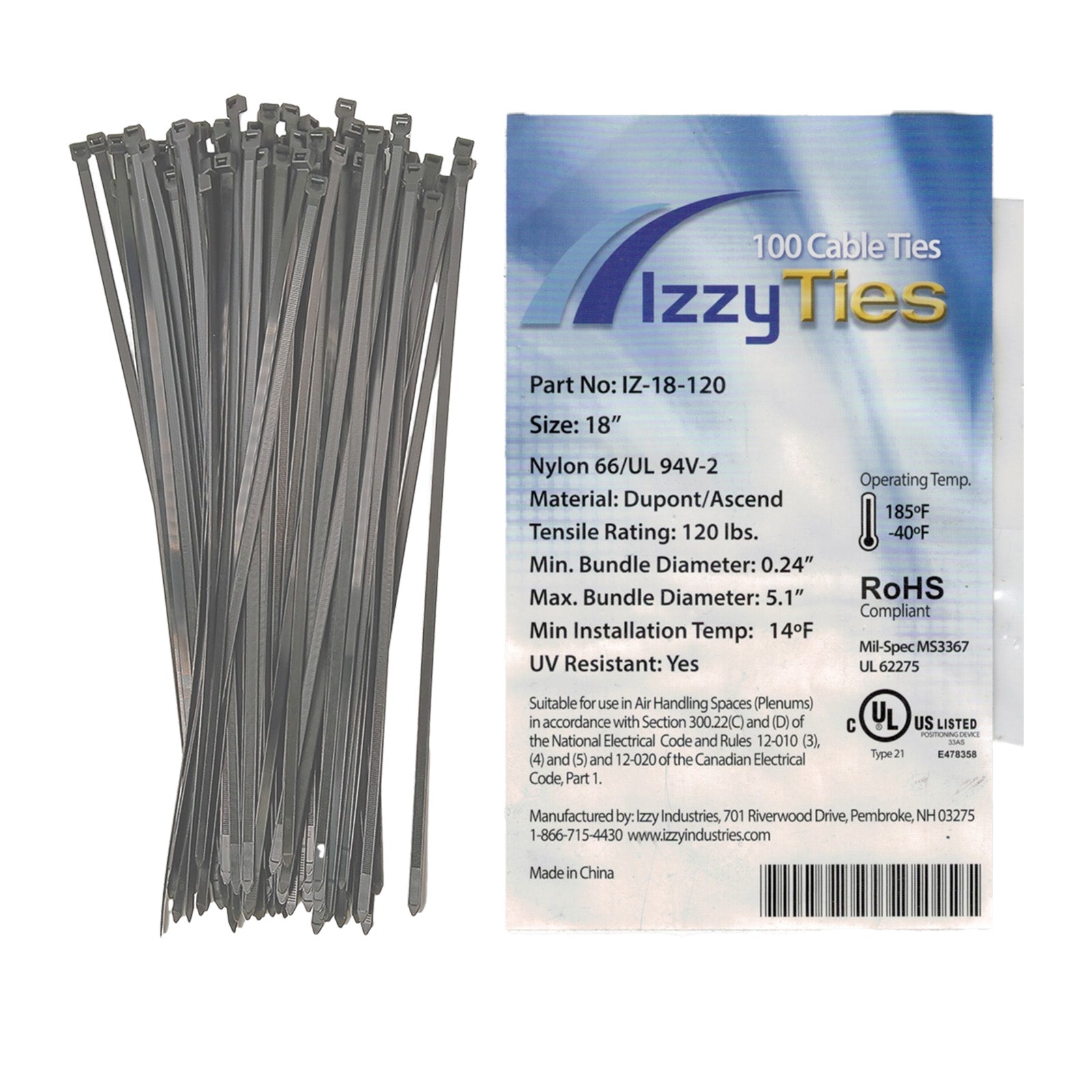 18" Nylon Zip Ties, Black, 120 lb. - The Satellite Shop